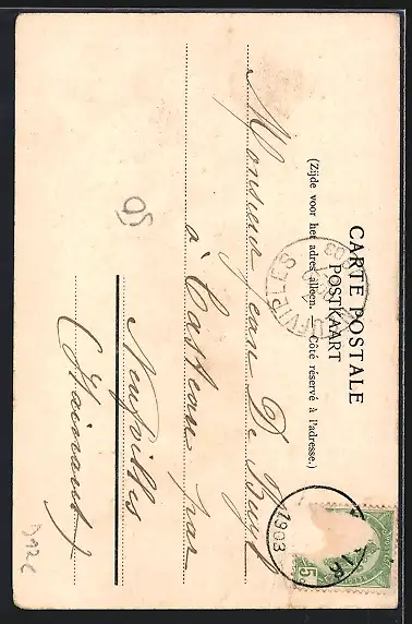 alte Ansichtskarte, gelaufen 1903, Abriebspuren oben li., guter Zustand