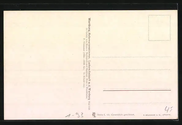 Personenbezogene Daten auf der Rückseite der Karte wurden durch blauen Textmarker unkenntlich gemacht. Die blauen Stellen sind auf die Vorderseite durchgeweicht und wirken sich negativ auf das Postkartenfoto aus