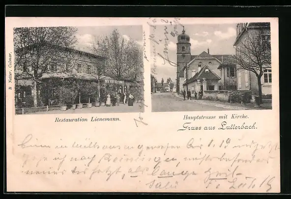 AK Lutterbach, Restaurant Lienemann, Hauptstrasse mit Kirche