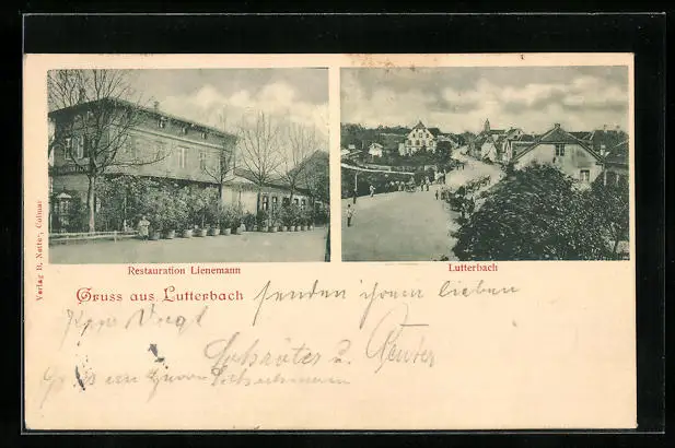 AK Lutterbach, Restaurant Lienemann, Strassenpartie