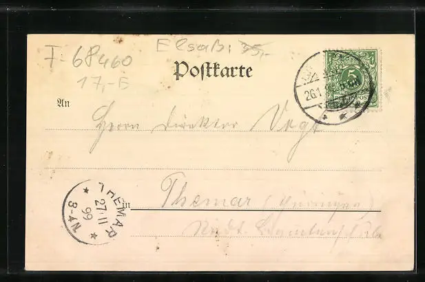 alte Ansichtskarte, gelaufen 1899, Stempelspur, guter Zustand
