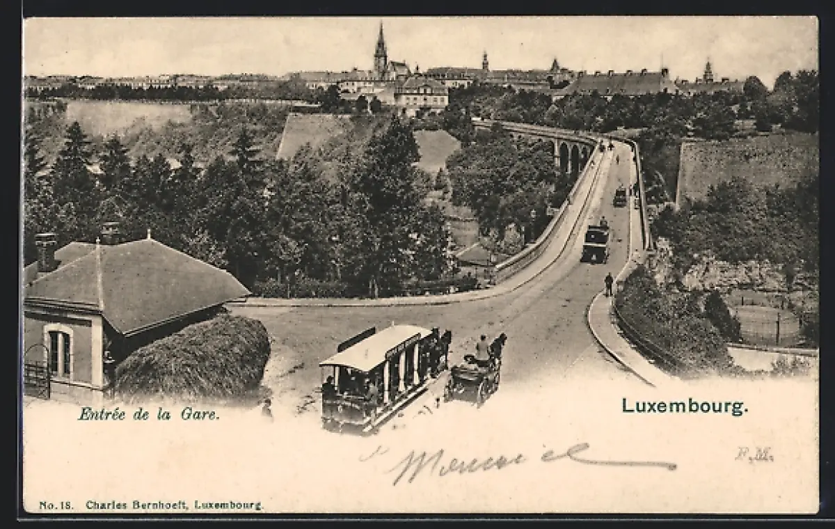 AK Luxembourg, Entrée de la Gare, Pferdebahn