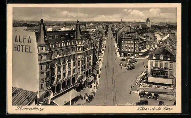 AK Luxembourg, Place de la Gare, Strassenbahn