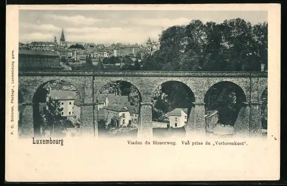 AK Luxembourg, Viaduc du Bisserweg, vue prise du Verlorenkost