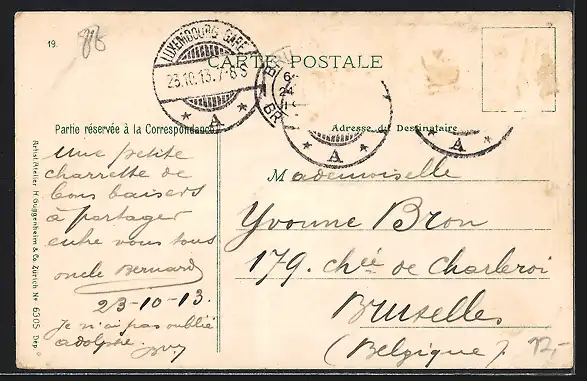 gelaufen 1913, Briefmarke entfernt, Eckknick li. unten, guter Zustand