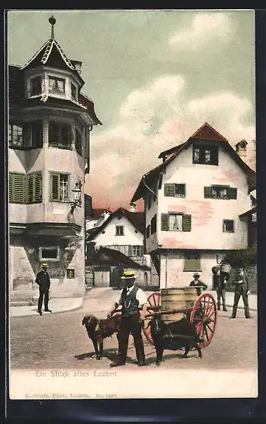 AK Luzern, Altstadtpartie, Milchfuhrwerk mit Hundegespann