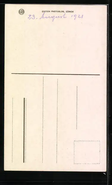 Personenbezogene Daten auf der Rückseite der Karte wurden durch blauen Textmarker unkenntlich gemacht. Die blauen Stellen sind auf die Vorderseite durchgeweicht und wirken sich negativ auf das Postkartenfoto aus