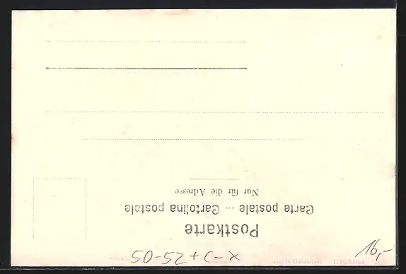 Personenbezogene Daten auf der Rückseite der Karte wurden durch blauen Textmarker unkenntlich gemacht. Die blauen Stellen sind auf die Vorderseite durchgeweicht und wirken sich negativ auf das Postkartenfoto aus