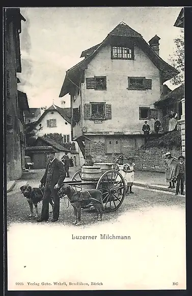AK Luzern, Milchmann mit Hundewagen im Ort