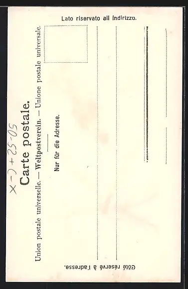 Personenbezogene Daten auf der Rückseite der Karte wurden durch blauen Textmarker unkenntlich gemacht. Die blauen Stellen sind auf die Vorderseite durchgeweicht und wirken sich negativ auf das Postkartenfoto aus
