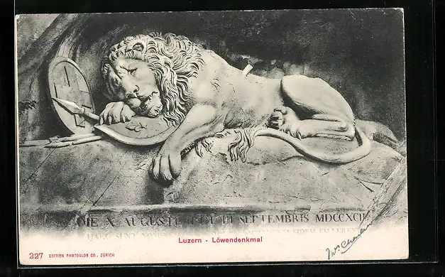 AK Luzern, Nahaufnahme des Löwendenkmals