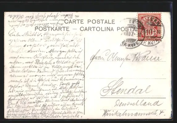 alte Ansichtskarte, gelaufen 1907, kleiner Eckknick links oben, guter Zustand
