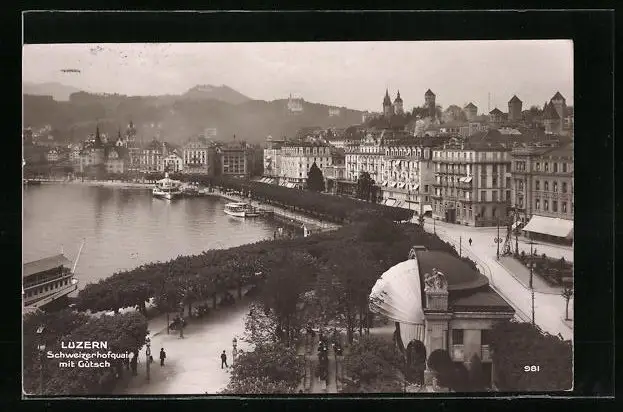 AK Luzern, Schweizerhofquai mit Gùtsch