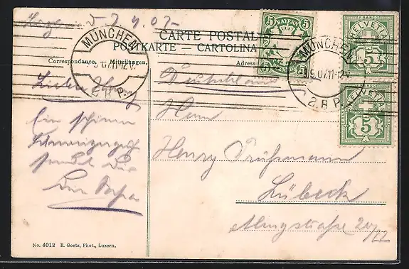alte Ansichtskarte, gelaufen 1907, Stempelspur, guter Zustand