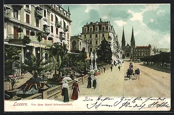 AK Luzern, Strasse vor dem Hotel Schweizerhof