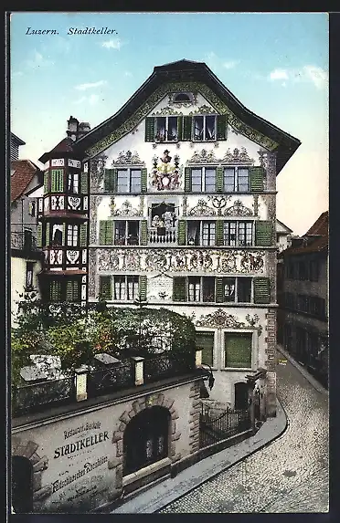 AK Luzern, Strassenpartie am Gasthaus Stadtkeller