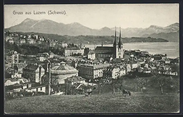 AK Luzern, Teilansicht mit Rundbau und Kirche