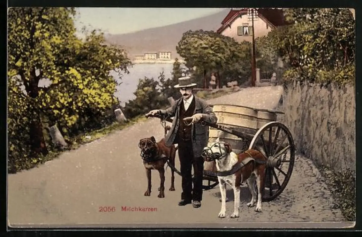 AK Luzern, Verkäufer mit Hundegespann vorm Milchkarren