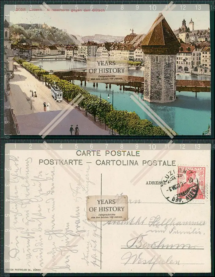 AK Luzern, Wasserturm Kapellbrücke, Blick nach Gütsch M2023-06-30-163AK Luzern, Wasserturm Kapellbrücke, Blick nach Gütsch