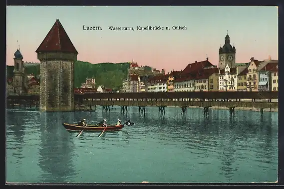 AK Luzern, Wasserturm, Kapellbrücke und Gütsch