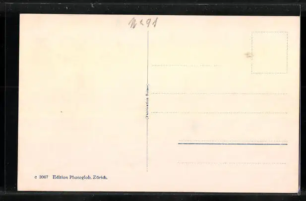 Personenbezogene Daten auf der Rückseite der Karte wurden durch blauen Textmarker unkenntlich gemacht. Die blauen Stellen sind auf die Vorderseite durchgeweicht und wirken sich negativ auf das Postkartenfoto aus