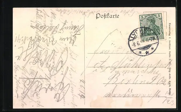 gelaufen 1914, rückseitig Klebe- und Papierreste, guter Zustand