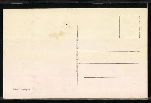 Personenbezogene Daten auf der Rückseite der Karte wurden durch blauen Textmarker unkenntlich gemacht. Die blauen Stellen sind auf die Vorderseite durchgeweicht und wirken sich negativ auf das Postkartenfoto aus