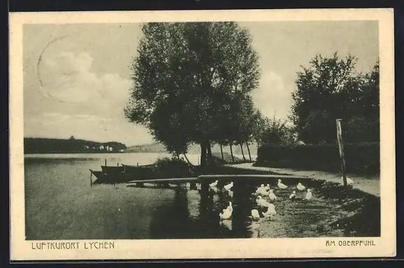AK Lychen, Partie am Oberpfuhl mit Enten