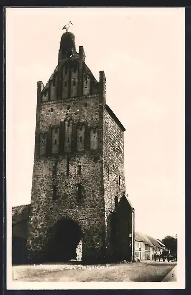 AK Lychen, Strassenpartie mit Stargarder Tor und Storchennest