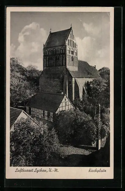AK Lychen U.-M., Kirchplatz mit Kirche