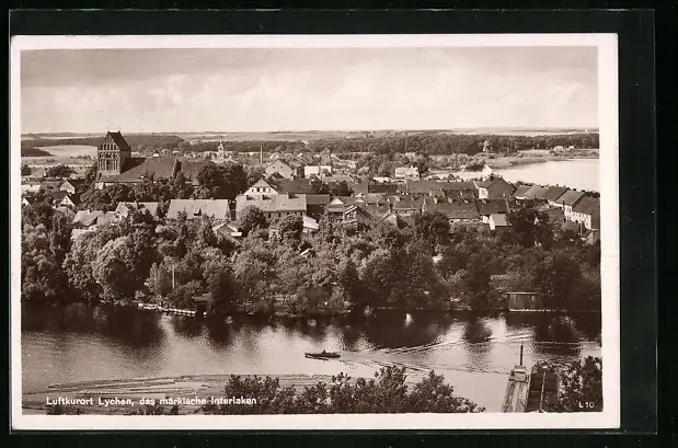 AK Lychen /U.-M., Ortsansicht und Seepartie aus der Vogelschau