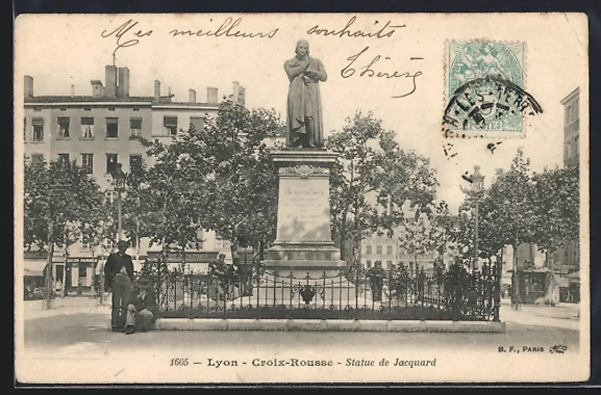 AK Lyon, Croix-Rousse, Statue de Jacquard