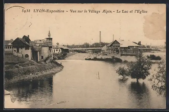 AK Lyon, Exposition, Vue sur le Village Alpin, Le Lac et l`Eglise