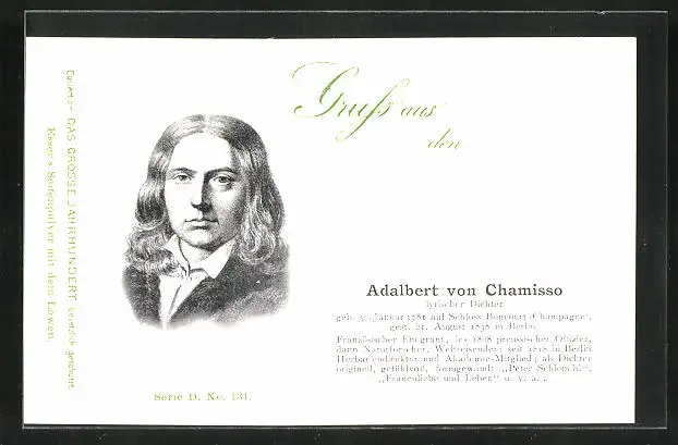 AK Lyrischer Dichter Adalbert von Chamisso im Portrait