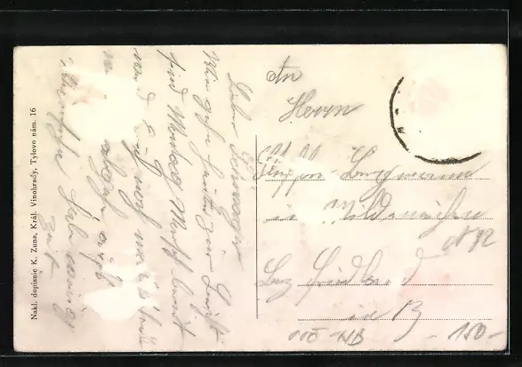 alte Ansichtskarte, gelaufen, Briefmarke entfernt, rückseitig Oberflächenschaden, Eckknick li. oben, guter Zustand