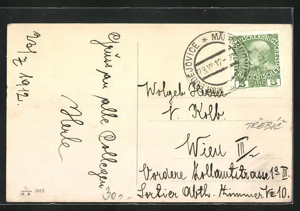 alte Ansichtskarte, gelaufen 1912, Stempelspur, guter Zustand