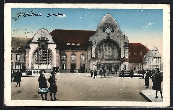 AK M. Gladbach, Bahnhof mit Strassenpartie