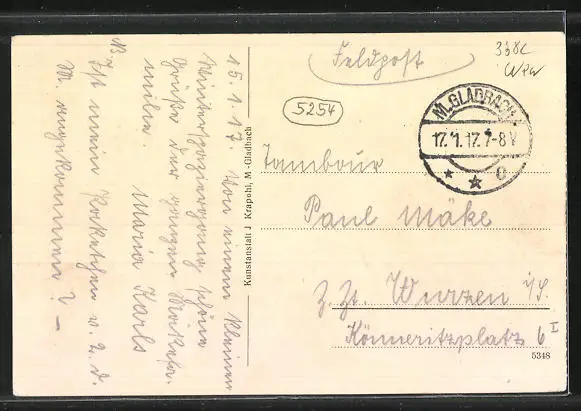 alte Ansichtskarte, gelaufen 1917 als Feldpost, Stempelspur, guter Zustand
