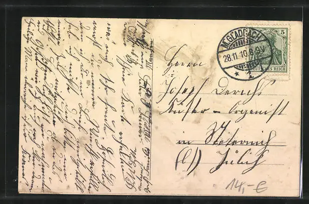 alte Ansichtskarte, gelaufen 1910, Eckknick li. oben, guter Zustand