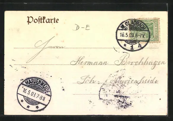 alte Ansichtskarte, gelaufen 1903, Stempelspur, Stecknadelloch li. unten, guter Zustand