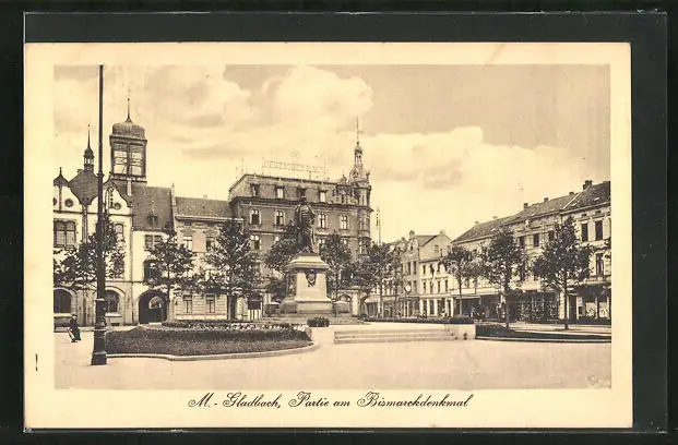 AK M. Gladbach, Partie am Bismarckdenkmal