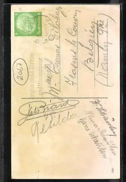 alte Ansichtskarte, gelaufen, Bugspur li. oben, Oberflächenschaden, sonst guter Zustand