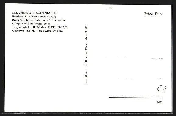 AK MS Henning Oldendorff der Reederei E. Oldendorff