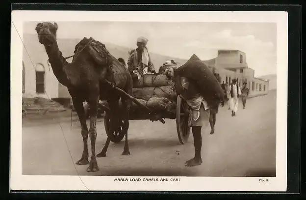 AK Maala Load Camels and Cart, arabische Männer mit Kamel-Gespann