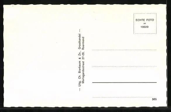 Personenbezogene Daten auf der Rückseite der Karte wurden durch blauen Textmarker unkenntlich gemacht. Die blauen Stellen sind auf die Vorderseite durchgeweicht und wirken sich negativ auf das Postkartenfoto aus