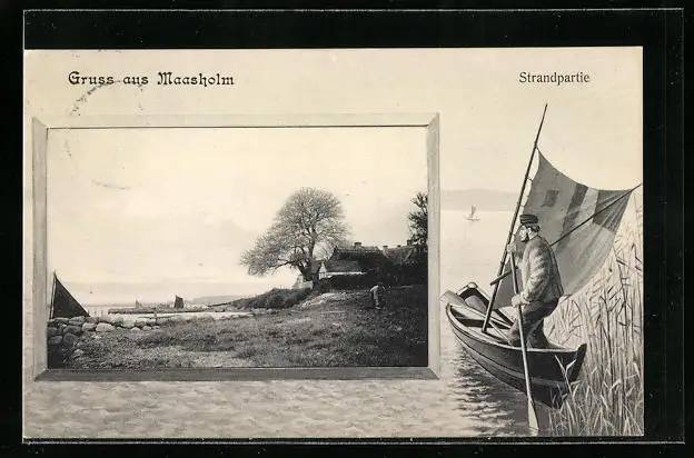 AK Maasholm, Strandpartie, Mann im Boot