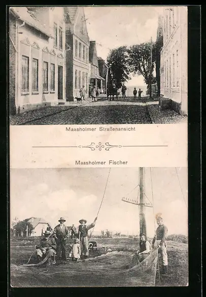 AK Maasholm, Strassenansicht und Fischer