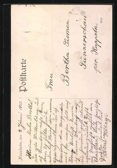 alte Ansichtskarte, gelaufen, Briefmarke entfernt, rückseitig Oberflächenschaden, guter Zustand