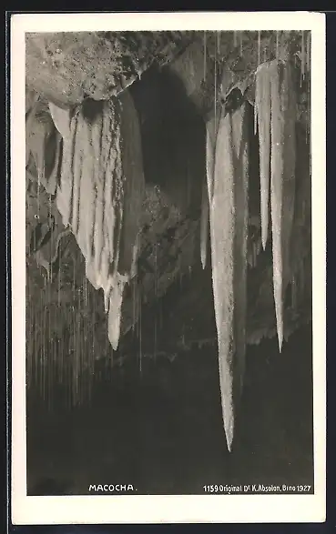AK Macocha-Höhle, Stalagmiten in der Grotte