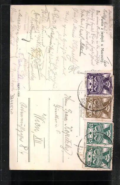 Personenbezogene Daten auf der Rückseite der Karte wurden durch blauen Textmarker unkenntlich gemacht. Die blauen Stellen sind auf die Vorderseite durchgeweicht und wirken sich negativ auf das Postkartenfoto aus